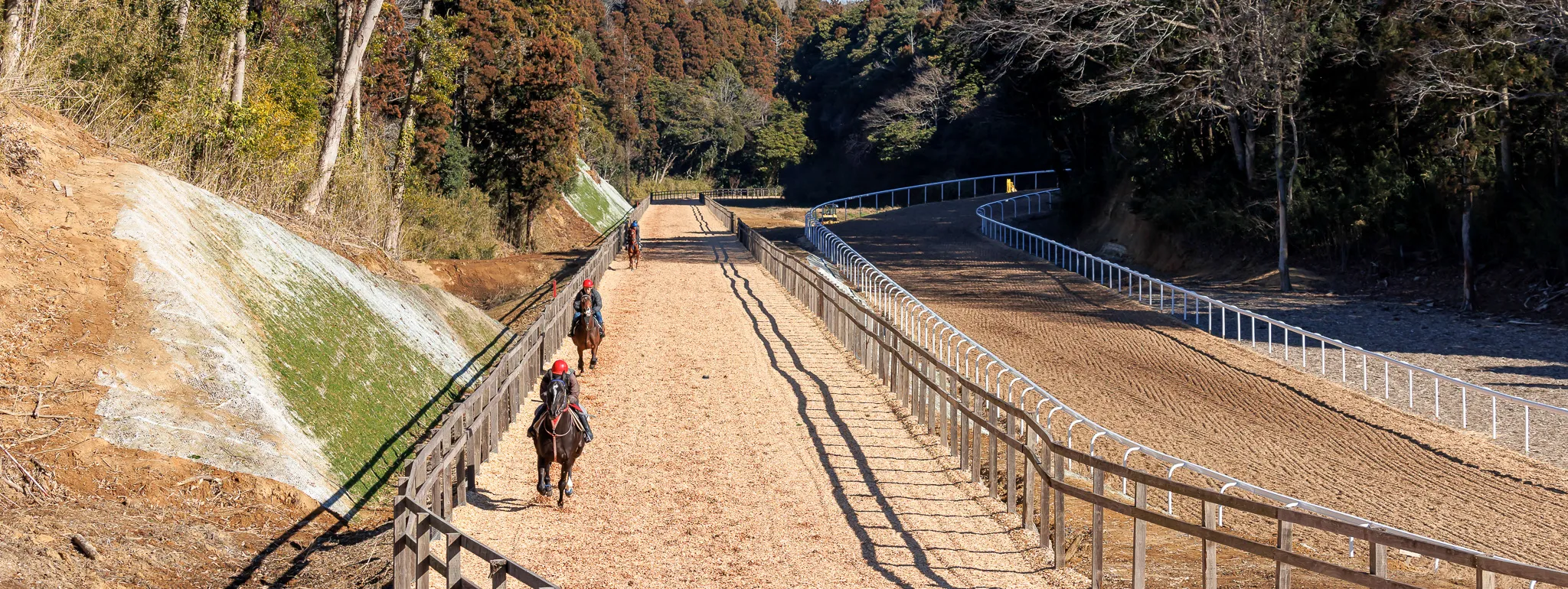 全長1200m(高低差33m)の坂路コースを主体として、アスリートである競走馬に対し強度を高めたメリハリのある調教を課すことで近々の競馬を見据えた調整を行います。